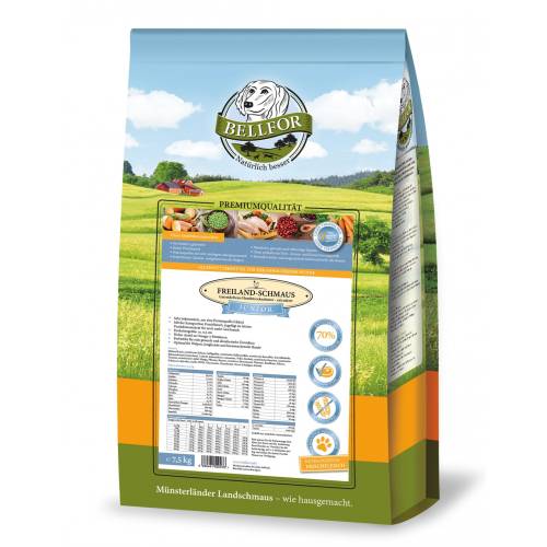 BELLFOR Junior-Freiland-Schmaus - Trockenfutter für Welpen & Junge Hunde mit Huhn getreidefrei 7.5 kg