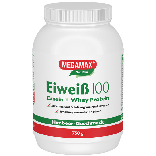 MEGAMAX Eiweiß 100 besteht aus Molkenprotein und Milchprotein. Diese Proteine unterstützen die Zunahme und Erhaltung von Muskelmasse und tragen auch zu einer Erhaltung normaler Knochen bei. Daneben enthält MEGAMAX Eiweiß 100 eine sorgfältig abgestimmte Auswahl von Vitaminen, die auch im Eiweißstoffwechsel von Bedeutung sind. Vitamin B12 zum Beispiel trägt zu einem normalen Ablauf des Energiestoffwechsels bei und Vitamin C unterstützt die normale Funktion des Immunsystems während und nach intensiver körperlicher Betätigung.