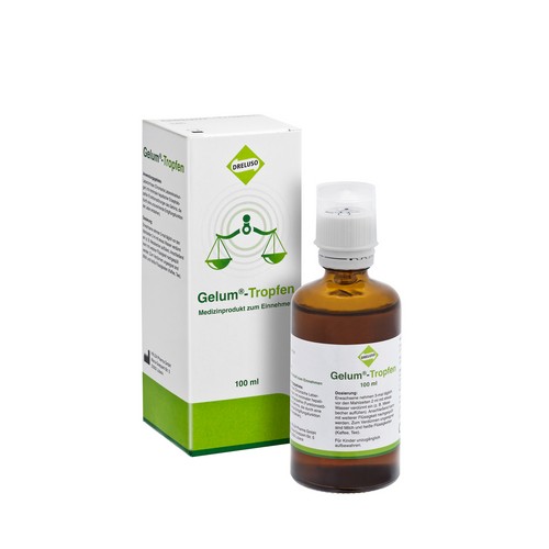 Zum Abmessen der Tropfen ist der Packung ein Messbecher beigefügt. Erwachsene nehmen 3-mal täglich vor den Mahlzeiten 2 ml Gelum-Tropfen mit etwas Wasser verdünnt ein (hierfür kann der Messbecher mit Wasser aufgefüllt werden). Anschließend kann mit weiterer Flüssigkeit nachgespült werden.Nicht geeignet zum Verdünnen sind Milch sowie heiße Flüssigkeiten (Tee, Kaffee).