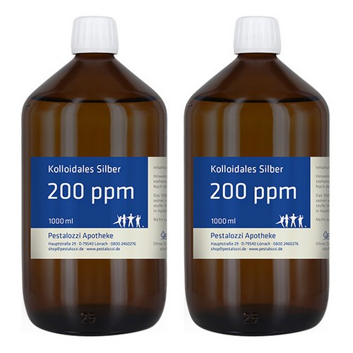 2 x 1000 ml "Kolloidales Silber - Pestalozzi Apotheke" in lichthemmender Apothekerbraunglasflasche