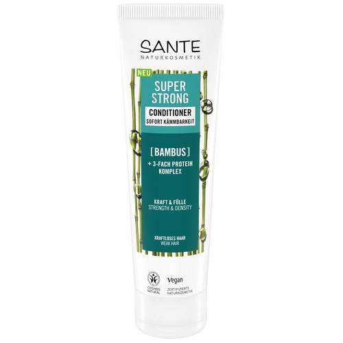 Der Super Strong Conditioner enthält eine hochwirksame Pflegeformel aus Bio-Bambus Extrakt und 3-Fach Protein Komplex, die das Haar kräftigt und Haarbruch reduziert. Für schwungvolles, gesund aussehendes Haar bis in die Spitzen ohne zu beschweren ohne zu beschweren. Der 3-Fach Protein Komplex stärkt, pflegt & schützt das Haar von der Wurzel bis in die Spitzen. Der hydratisierende Pflege-Komplex füllt & baut das Haar auf, für eine natürlich kraftvolle Haarstruktur. Die Verträglichkeit ist dermatologisch getestet.
