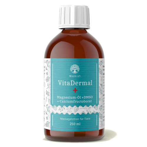 VitaDermal ist eine Mineralienhaltige Massagelotion für Tiere. Die natürliche Massagelotion enthält Magnesium-Öl, DMSO und Calciumfructoborat. VitaDermal erhalten Sie im UV-Lichtgeschützten Braunglas.